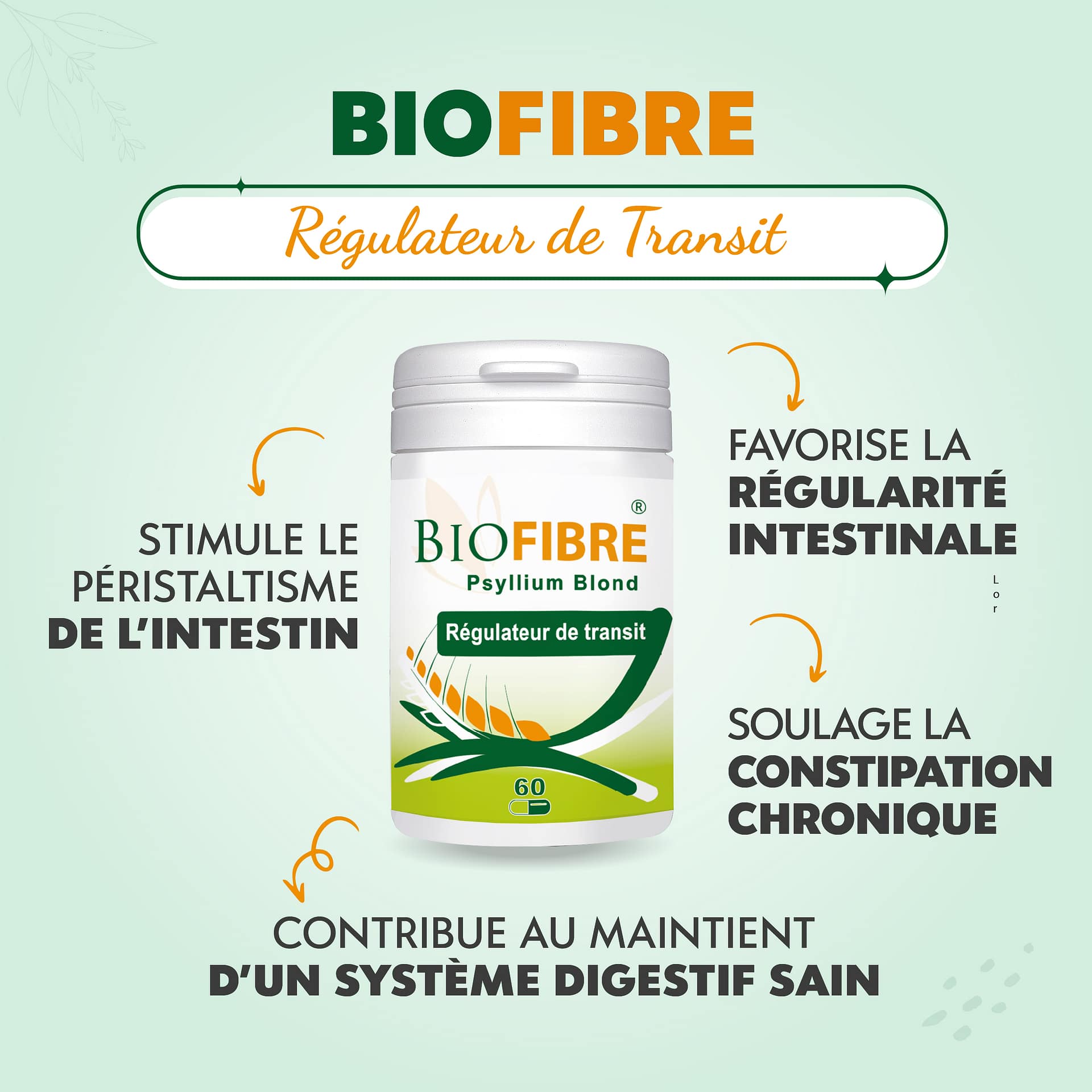 Biofibre est un complément alimentaire à base de Psyilium Blond qui aide à maintenir un intestin sain et à faciliter le transit intestinal