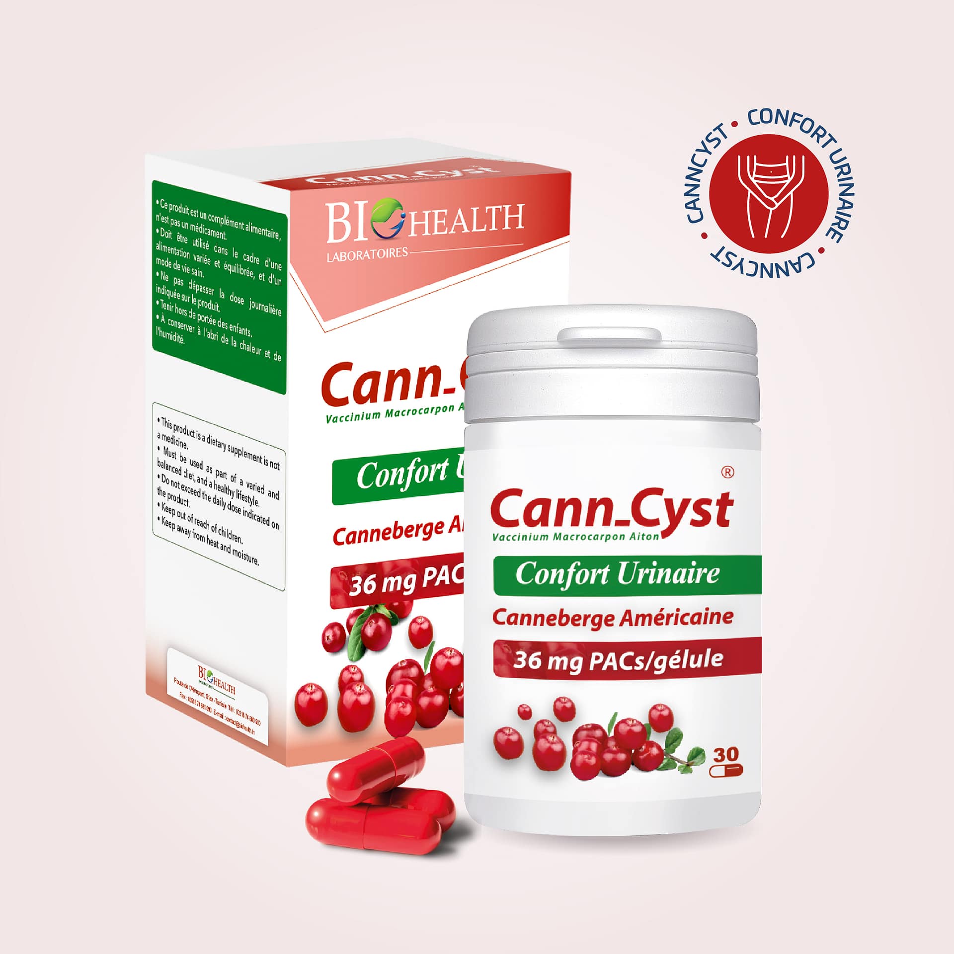 Cann-cyst est un complément alimentaire à base d’extrait de Canneberge Américaine, appelée Vaccinium Macrocarpon Aiton, une plante originaire d’Amérique du Nord, conseillée pour la prévention des infections urinaires récidivantes.