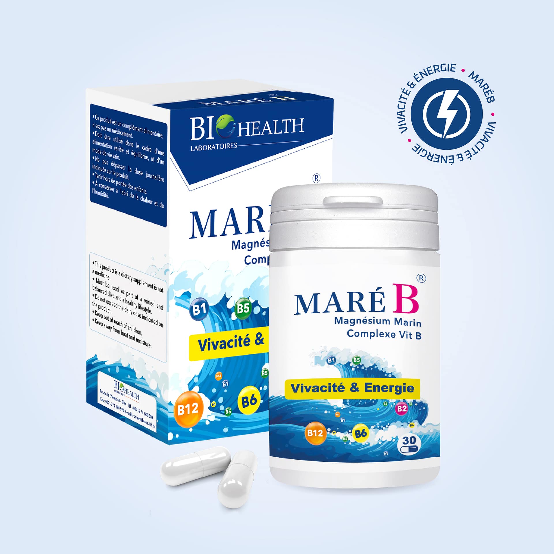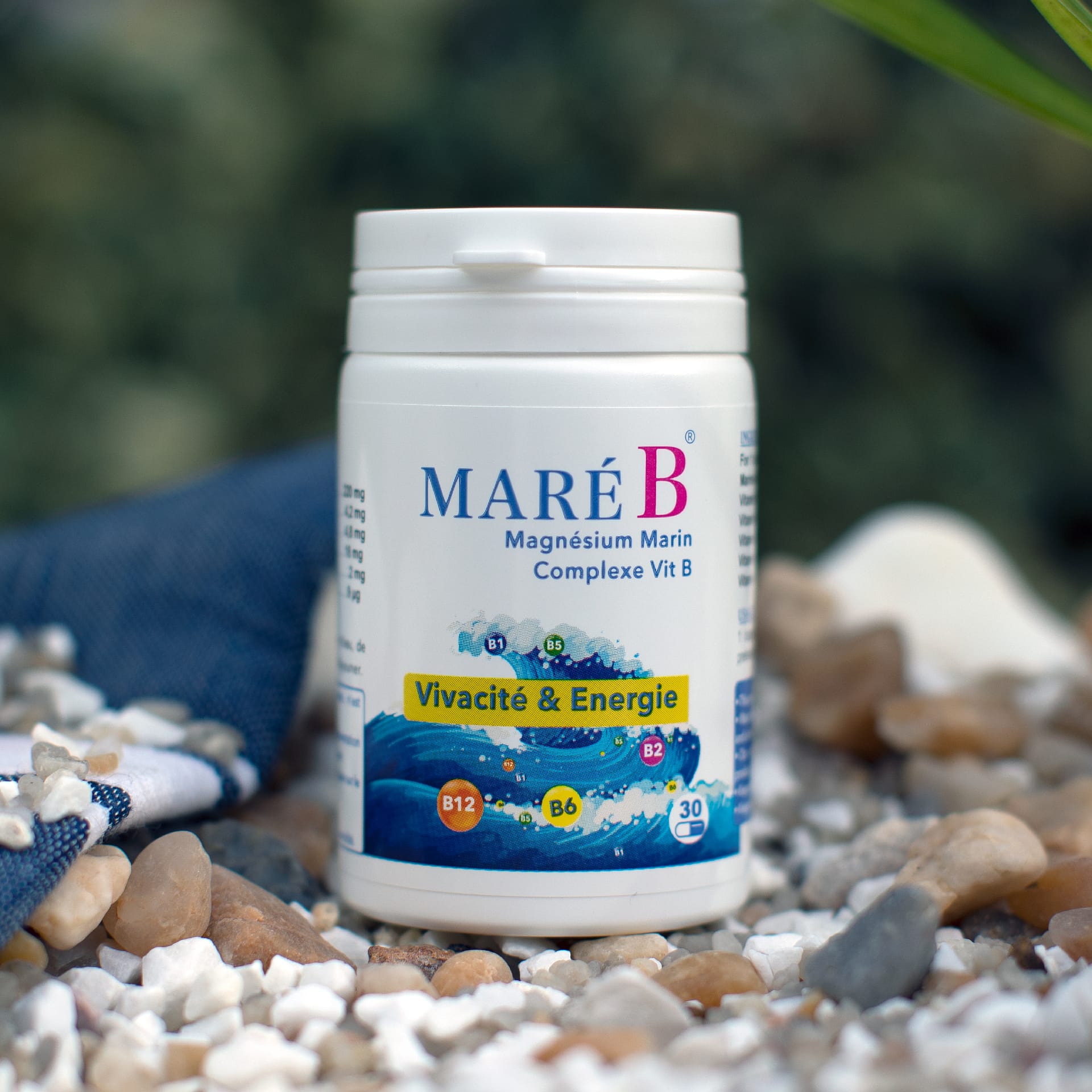 Maré-B est un complément alimentaire réservé à l’adulte sous forme d’un complexe bien dosé de 5 vitamines du groupe B avec du magnésium marin, pour soutenir le fonctionnement nerveux, le métabolisme énergétique et le renouvellement cellulaire.